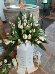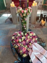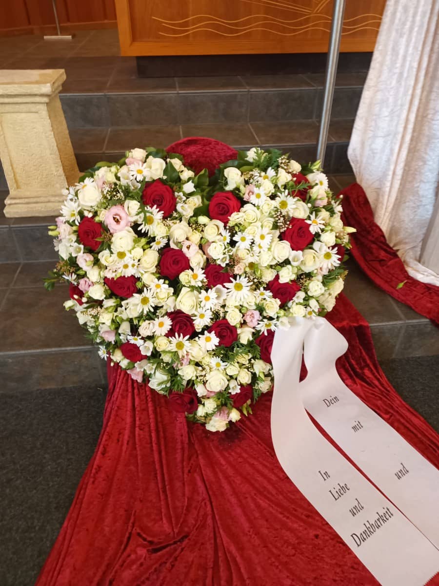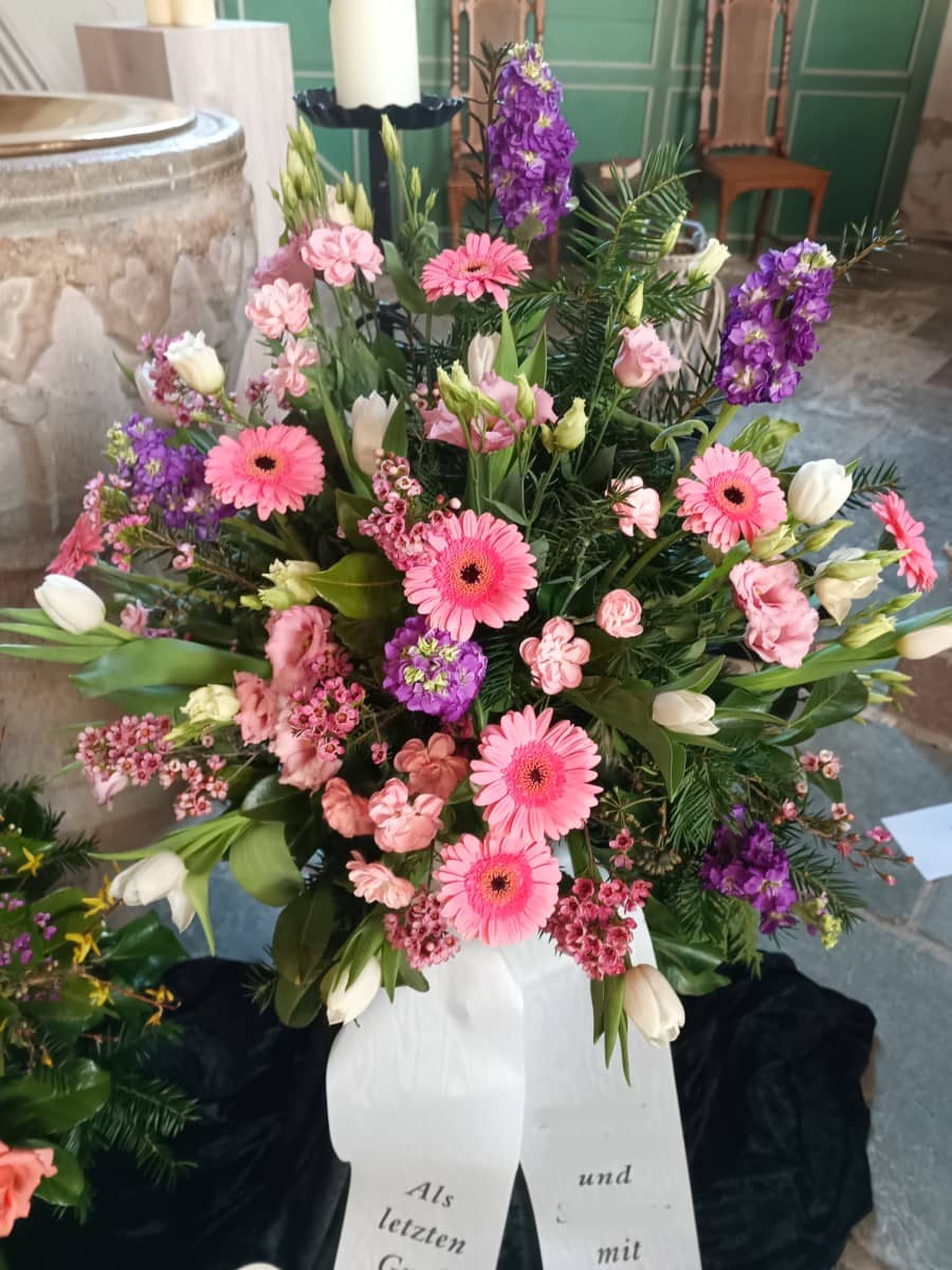 Wir fertigen für Sie individuelle Trauergestecke für Trauerfeiern